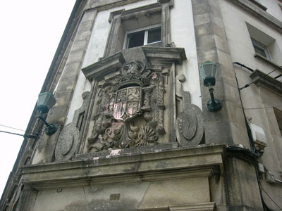 impunidae: higiene, justicia y democracia".-En Ferrol fué marcado en rosa el escudo fascista en la fachada del Edificio de Archivos de la Armada Española, localizado en la rua Maria esquina con la Rua Atocha.