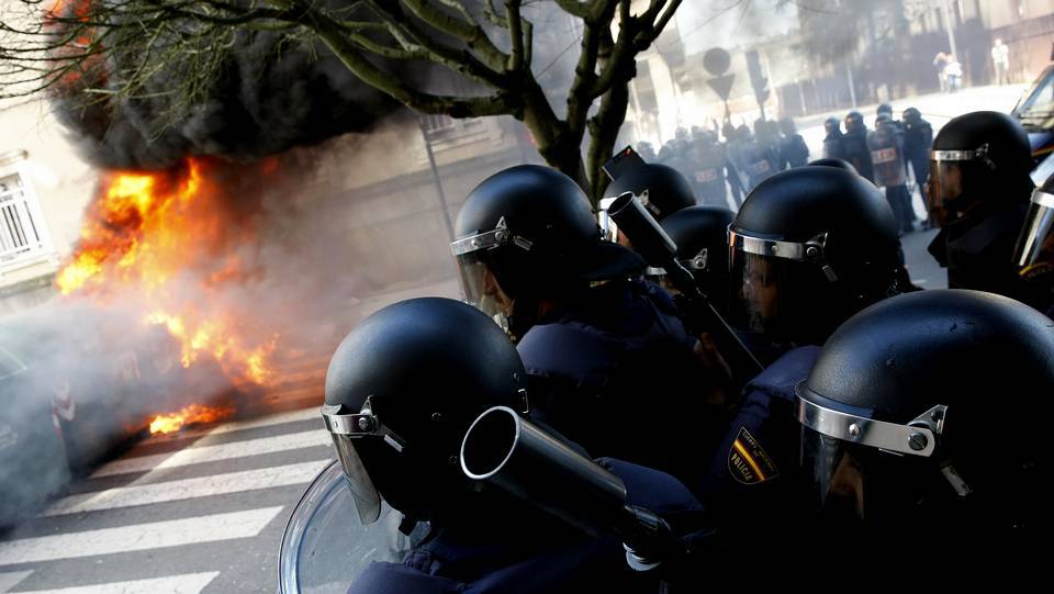 [Fotos y Video] Selvagem carga policial en Compostela aos marinheiros galegos