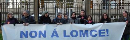 Con motivo de la aprobación de la LOMCE en el Congreso español con los votos a favor del PP y el rechazo de toda la oposición, la Plataforma galega en defensa de la educación pública escogió la entrada de la Consellería de Educación, en San Caetano, Compostela, para denunciar el visto bueno que la Cámara Baja dará al texto de Wert, visto bueno que el colectivo tildó de "acto de irresponsabilidad letal". Así mismo, se quejaron también de la connivencia del departamento de Jesús Vázquez con el ministerio español para ahondar en la españolización de la educación pública galega.