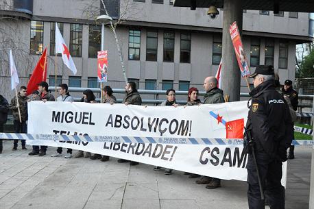 Durante más de seite horas el primer día y alrededor de cinco el segundo, amistades, vecinas y vecinos y camaradas de Telmo y Miguel manifestamos nuestro apoyo a ambos compañeros, conscientes que nuestros gritos eran escuchados en el interior de la sala.