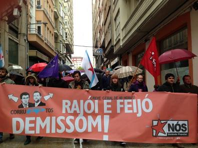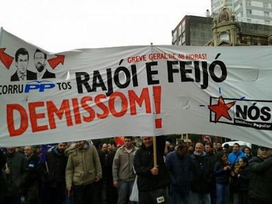 "Nosotros emigrando, ellos robando", "La lucha es el único camino", "Feijó, Rajoi dimisión!" o "España es nuestra ruina", han sido las consignas más repetidas durante toda la manifestación, junto a aquellas que pedíann la convocatoria de una nueva huelga general.