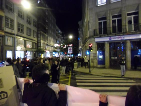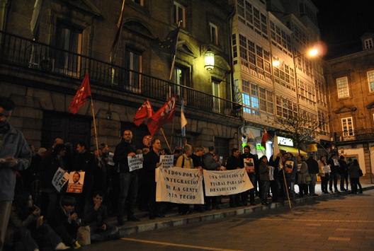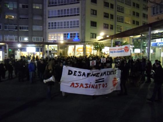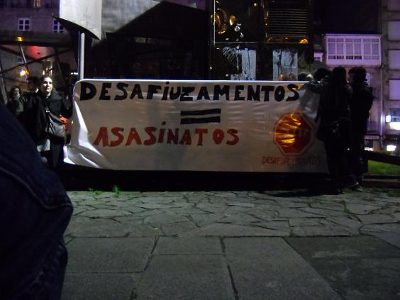 Os berros mais escuitados fôrom "Gente sem casa, casas sem gente", "Nom som suicídios que som assassinatos", "Nom mais desalojos", "O capitalismo é o terrorismo", etc.
