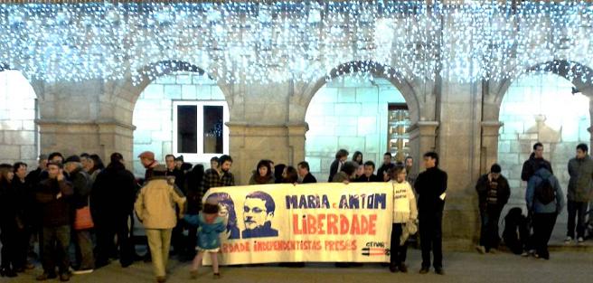 En la Plaza Mayor de Lugo más de 40 solidarios mostraron su apoyo al CPIG y denunciaron las condiciones penitenciarias a las que se ven sometid@s. En esta comarca la participación se ha visto acrecentada desde el mes pasado en el que la militancia anti-represiva llevó a cabo una intensa campaña de información y denuncia coincidiendo con el año del secuestro de María y Antón.