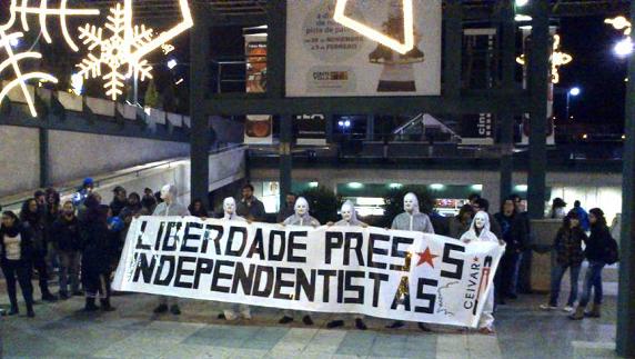 Na Praça Maior de Lugo mais de 40 solidári@s mostrarom o seu apoio ao CPIG e denunciarom as condiçons penitenciárias às que se vem sometid@s. Nesta comarca a participaçom viu-se acrescentada desde o mês passado no que a militância anti-repressiva levou a cabo umha intensa campanha de informaçom e denúncia coincidindo com o ano do sequestro de Maria e Antom.