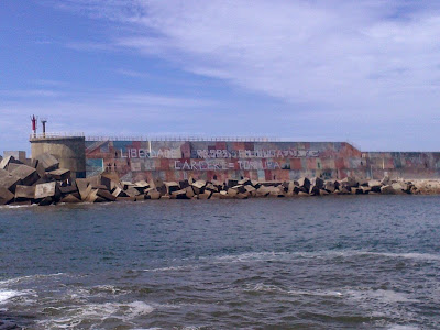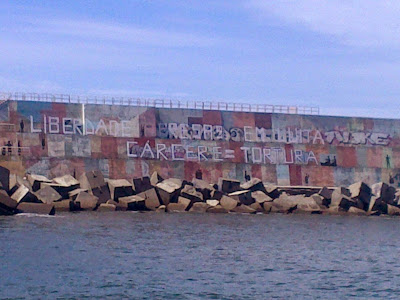 Si hace dos días informabamos de la contribución a la campaña anticarcelaria deanonim@s compañer@s de Vigo (-AQUÍ) ahora le toca turno a A Guarda. A traves del correo electronico nos llegaron estas fotos del dique tan bien decorado