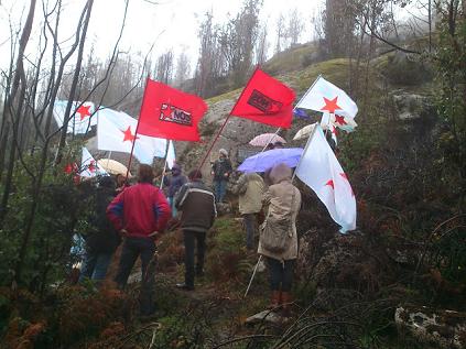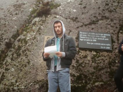 Entre fuerte viento, lluvia y niebla, transcurrió el VI homenaje a Manuel Gonçalves Fresco que la Asamblea Comarcal de NÓS-Unidade Popular do Condado rinde desde 2008.