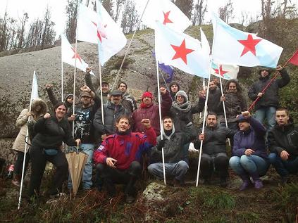 Caminhamos à volta dos três quilómetros e meio para, após sonar o hino do antigo Reino da Galiza, a companheira Sheila Fernandes apresentar o ato e dar passo às intervençons de Heitor Munhoz, em nome da organizaçom juvenil da esquerda independentista BRIGA, e a Abraám Alonso em representaçom da Assembleia Comarcal da Unidade Popular do Condado.