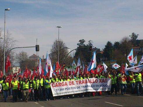A colorida e multitudinária manifestaçom reclamando carga de trabalho foi apoiada polos diferentes sindicatos com presença no naval de Ferrol, no mesmo dia em que o presidente da Autonomia galega vai reunir-se em Madrid para, supostamente, falar sobre a grave crise que afeta o setor naval galego, tanto o viguês como o trasanquês.