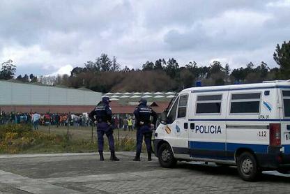 [Gal/Cast] Afectados por las preferentes realizan protestas pese a la agobiante presencia policial a las puertas del congreso del PP en Pontevedra