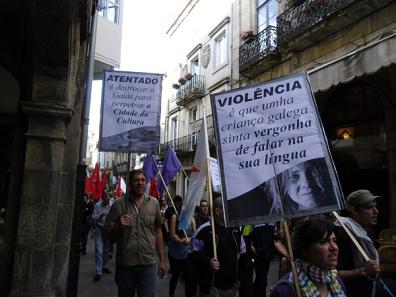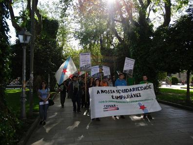 Com saída às 19.00 horas da Alameda, centenares de pessoas percorrérom as ruas históricas da capital galega, visibilizando o protesto. Gritos como "Audiência Nacional, tribunal fascista" ou "Nom estamos tod@s, faltam @s pres@s" compartilhárom espaço com berros de "independência" e por umha "Galiza ceive". O ponto final foi a Praça do Toural, depois de percorrer as principais ruas do centro.