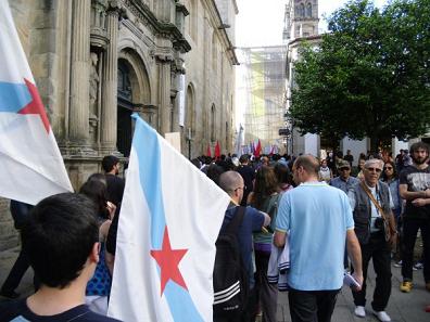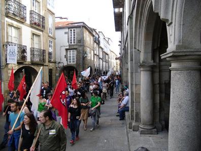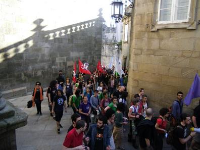 Con salida a las 19:00 horas de la Alameda, cientos de personas recorrerán las calles históricas de la capital galega, visivilizando la protesta. Gritos como "Audiencia Nacional, tribunal faascista" o "No estamos tod@s, faltan l@s pres@s" compartieron espacio con gritos de "independencia" y por una "Galiza libre". El punto final fue la Plaza del Toral, después de recorrer las principales calles del centro.
