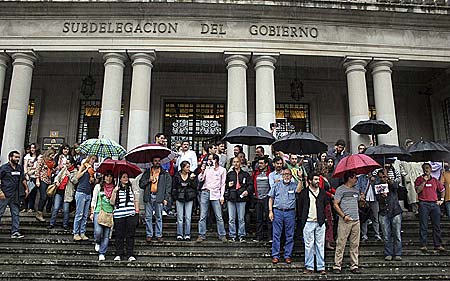 200 jornalistas concentrarom-se perante a sede da Subdelegaçom do Governo em Ponte Vedra para expressar seu "rejeitamente e fonda indignaçom" pola detençom do reporteiro gráfico do Diário de Pontevedra Rafael Estévez, enquanto realizava seu trabalho no aeroporto de Vigo. Doutra parte, diversas organizaçons profissionais criticarom a actuaçom policial.