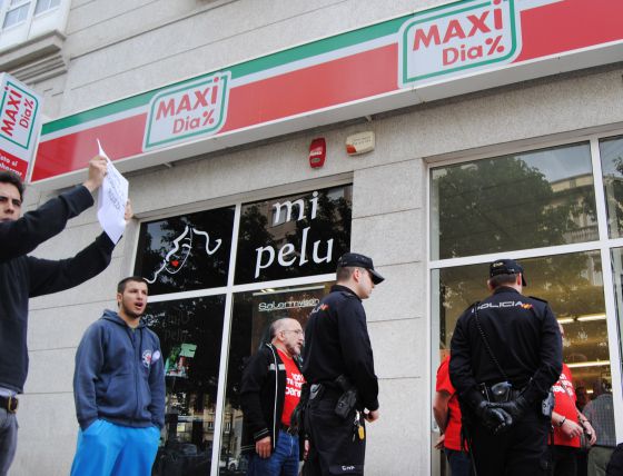 Los hechos ocurrieron el 6 de junio a las 12.15 horas en el establecimiento 'Maxi Dia' de Ferrol, situado en la calle Españoleto con Rochel. Los participantes en la protesta portaban una pancarta en la que se leía la frase 'Por el empleo y la dignidad, no permanecemos parados'.