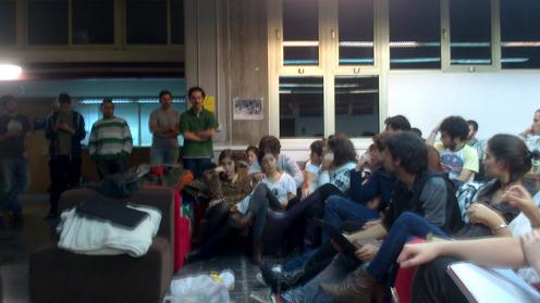 DSC 0051O debate para a redaçom de um manifesto iniciou-se às 22h00 e prolongouse até a 1h00 da madrugada. Após 3 horas de intenso debate redigírom-se vários pontos que serám revisados por parte dos participantes durante todo o mês, através das redes sociais, até a sua eventual aprovaçom na ocupaçom seguinte.
