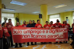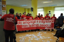 A asemblea de desempregados/as organizada arredor da CIG de Ferrol levou a cabo este mércores un encerro na oficina do Inem (da Avenida de Vigo) en demanda de políticas que favorezan a creación de postos de traballo e contra dos recortes sociais e laborais impostos polos gobernos. O colectivo mantivo a súa protesta dende ás dez da mañá até pasadas as tres da tarde, cando foron desaloxados/as pola policía sen que se producisen incidentes, para visibilizar que son "desempregados/as, pero non parados/as".
