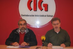 El secretario general de la CIG, Suso Seixo, y el representante de la central sindical en el CES del EStado, Luis Burgos, comparecían esta mañana en rueda de prensa para analizar el alcance de la reforma de las pensiones que pretende aprobar el gobierno de Mariano Rajoy antes de que finalice el año y presentar la campaña puesta en marcha por la central sindical, que contempla asambleas y manifestaciones en todas las comarcas el próximo 14 de noviembre.