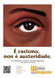 El Foro Galego de Inmigración organiza la VII Asamblea Galega de Inmigración y Emigración de Retorno, para analizar, debatir y denunciar el endurecimiento de las políticas migratorias y el recorte de derechos de los inmigrantes y de otros colectivos vulnerables. Políticas que se están imponiendo con el pretexto de la crisis económica y a justificar con un discurso xenófobo que "busca dividir a la sociedad". Con este motivo convocan además una manifestación, ese mismo día, a las 18:00 horas, con salida del Campo de Marte, bajo el lema " No es austeridad, es racismo".