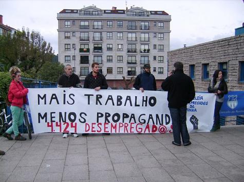 Con motivo de la segunda jornada de la Feria de Empleo de Porrinho, la Asamblea de desemplead@s de A Lourinha(ADL) realizó una concentración de protesta, en las inmediaciones del pabellón deportivo de la localidad, donde tenía lugar dicho evento.