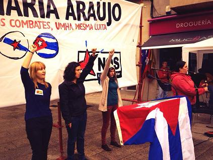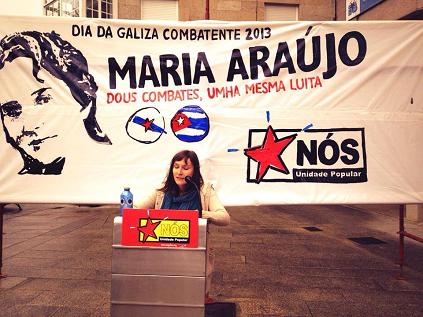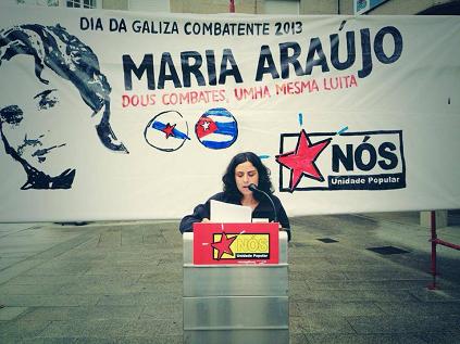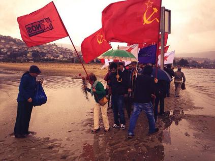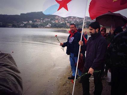 Bajo una intensa lluvia se ha celebrado en Redondela, en la playa de Cesantes, frente a la isla de San Simon el Dia da Galiza Combatente. Un buen número de militantes de la izquierda independentista galega han acudido a la llamada para recordar y homenajear a Maria Araujo, militante comunista galega y cubana.