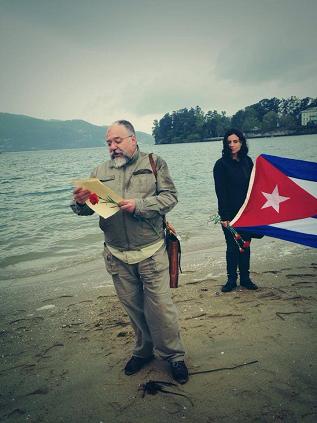 Antes de la ofrenda floral, teniendo como horizonte la isla de San Simon, donde se ubicaba una carcel utilizada por los fascistas para encerrar prisioneros republicanos, el poeta Augusto Fontam, he hecho lectura de varios poemas.