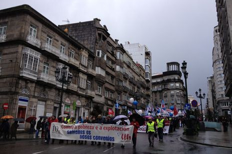 Além de Vigo e Ferrol, também Corunha, Lugo, Ponte Vedra, Ourense, Vila Garcia e Burela tivérom manifestaçons operárias nesta jornada, em muitos casos sobre a chuva e com um desaprazível vento que