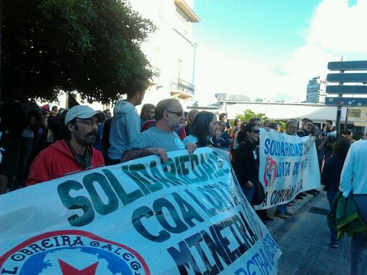 Para hoy estaba convocada una movilización de apoyo a la lucha minera en A Corunha, convocada por “A Corunha em Luita” delante de la Subdelegación del Gobierno de Espanha. El espacio fue ocupado por más de trescientas personas y estuvo fuertemente cuestodiado por las fuerzas represivas.