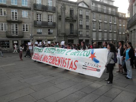 Además de las Asambleas, Ceivar convocó tres movilizaciones de protesta. La primera tuvo lugar en Compostela, el mismo domingo a la noche, con una concentración que, al estar próxima a las doscientas personas se convirtió en manifestación que recorrió la zona vieja desde la Plaza del Pan, hasta la Plaza de Galiza. Se exigió la libertad de los detenidos y no hubo presencia policial.