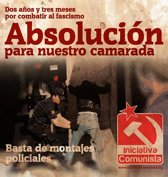Nesta ocasiom será um militante de Iniciativa Comunista o que terá que sentar-se nos julgados madrilenos sob acusaçom de umhas inexistentes lesions a um polícia, e polos que a procuradoria solicita dous anos e três meses de prisom.