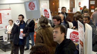 [Gal/Cast] Stop Despejos fecha-se numha sucursal bancária do centro de Compostela