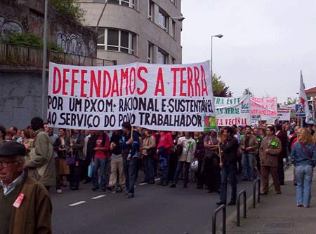 Señalar a respecto de la participación de organizaciones políticas, la presencia exclusiva de IU-EU y NóS-Unidade Popular. La formación independentista pone encima de la mesa la estrecha vinculación entre el capital financeiro, industrial y comercial y la planificación diseñada por PP y BNG. NóS-UP denuncia, además, la agresión que el PGOM supondrá al riquísimo patrimonio histórico, cultural y natural vigues, asi como los efectos de la turistificación en el término municipal (urbanizaciones de lujo y puertos deportivos sobre áreas litorales). Ayer, l@s independentistas participaron en un extenso cortejo con una pancarta donde se podia leer Defendamos a Terra: por um PGOM racional e sustentável ao servico do povo trabalhador.