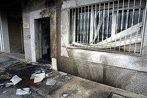 La rápida intervención de los bomberos habría impedido una mayor extensión del fuego. Las mismas fuentes apuntan a que el incendio se produjo como consecuencia de la colocación de un neumático rociado con líquido inflamable en la fachada del inmueble.