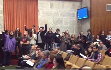Irrupçom de estudantes no Claustro da USC: A educaçom pública nom se debate, defende-se!