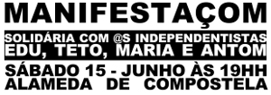 El sábado 15 de junio, el Organismo Anti-represivo Ceivar convoca una manifestación nacional en la Alameda de Compostela a las 19h en apoyo y solidaridad con María Osório, Antom Santos, Eduardo Vigo e Roberto Rodrigues, los cuatro militantes independentistas que serán juzgados en la Audiencia Nacional el 24 y 25 de este mismo mes y que se enfrentan a una petición de 64 años de prisión.
