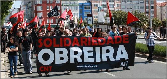 R: Con el 15M actualmente mantenemos una excelente relación. Tras el revuelo mediatico del año pasado y una vez reconocidas sus virtudes y defectos, lo que queda del movimiento es un grupo que ha mostrado un gran interes por la CNT, haciendo bloque en todas las manifestaciones, solicitándonos formación sobre organización asamblearia, dando charlas conjuntas, etc... En Ferrol se percibe un grandísimo malestar en la calle. La destrucción de empleo en los astilleros ha sido brutal estos dos ultimos años, y eso ha sido un golpe muy duro para la comarca. El problema, como en todos lados, es la alergia que tiene la gente a la organización, la militancia y las siglas. La sociedad esta demasiado fragmentada y desideologizada como para dar una respuesta firme a lo que nos esta cayuendo. Pero creemos que será inevitable que el nivel de conciencia vaya aumentando, y las organizaciones de clase se fortalezcan.