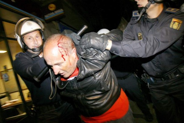 La cabeza abierta y sangrando abundantemente por la inusitada violencia, amenazas e insultos registrados en el material audiovisual existente deberían ser suficiente motivo para que las instancias judiciales actuasen de manera inmediata contra los responsables de la actuación represiva que concluyó con el líder sindical detenido.