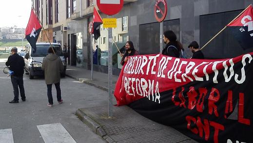 Estas políticas que nos levan a un paro indefinido e sistémico e á eliminación de todas as prestacións por desemprego, que son nosas e cuxa falta nos levará á miseria máis absoluta. Tamén queremos denunciar á patronal, que está a conseguir, baixo a ameaza do despedimento, unha continúa redución dos salarios e o empeoramento das condicións de traballo, obxectivo último da reforma laboral, aprobada agora hai un ano.