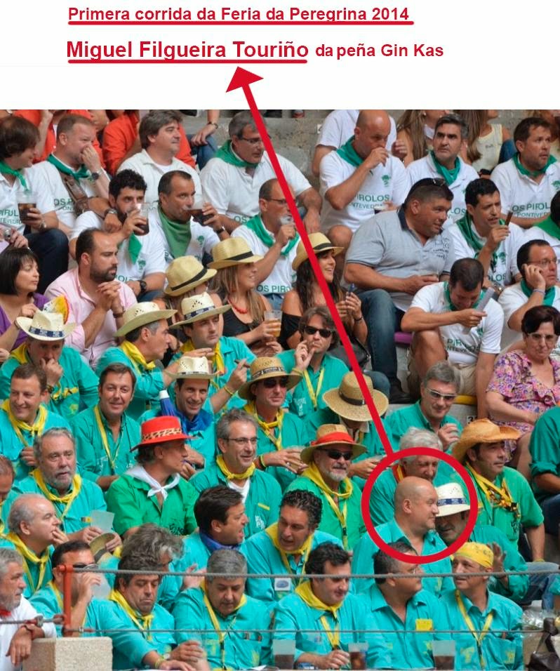 Mais iso é "moco de pavo"!! A hipocrasía do grupo municipal do BNG (lembremos qu este partido levou á cámara galega a petición de declarar Galiza terra sen touradas), chega ao seu esplendor con un outro dos seus concelleiros: Miguel Filgueira Touriño, quen renegando do seu segundo apelido é un entusiasta da matanza de touros, de feito é membro de sempre da peña taurina veterana "GinKas".