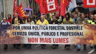 Manifestación nacional que baixo o lema "Por unha política forestal sostíbel servizo único, público e profesional. Non máis lumes" decorreu este domingo 29 de setembro polas rúas de Compostela.